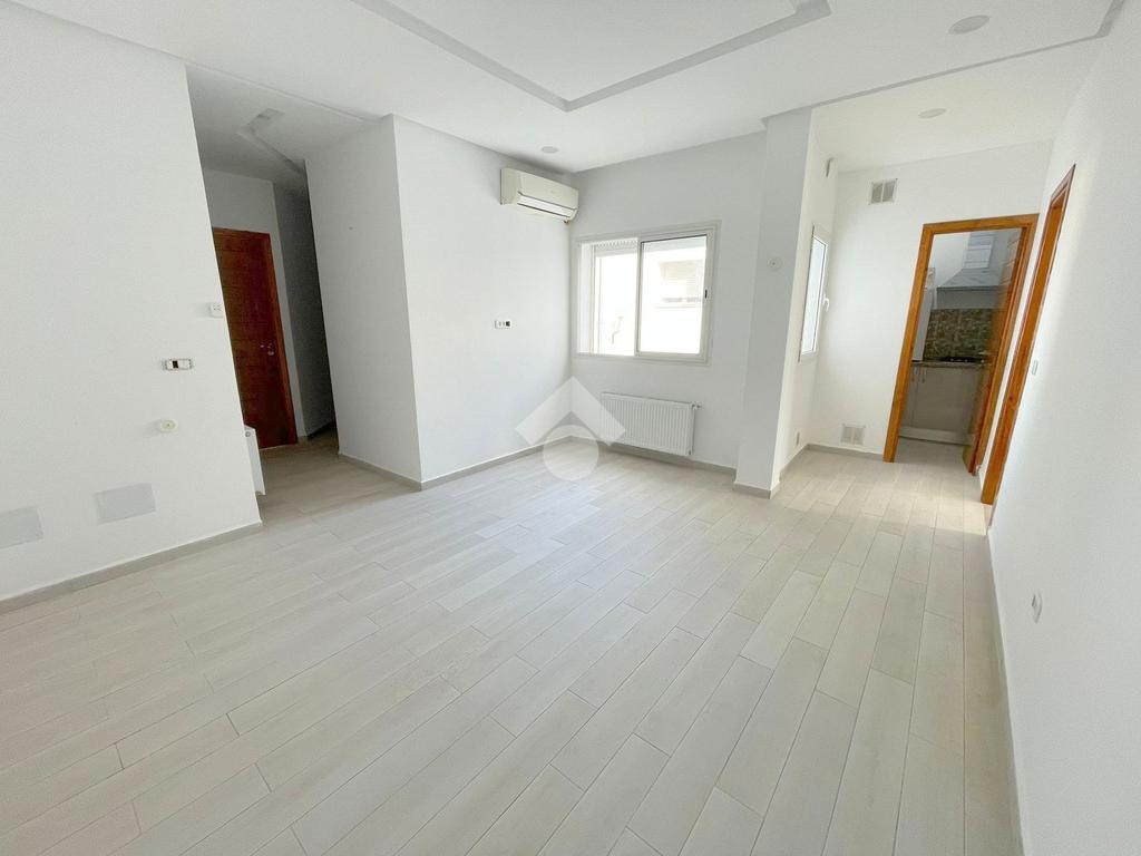 Cet hall + 2, situé au troisième étage d’un immeuble mixte (bureaux et habitation), se trouve au cœur de La Marsa Ville.