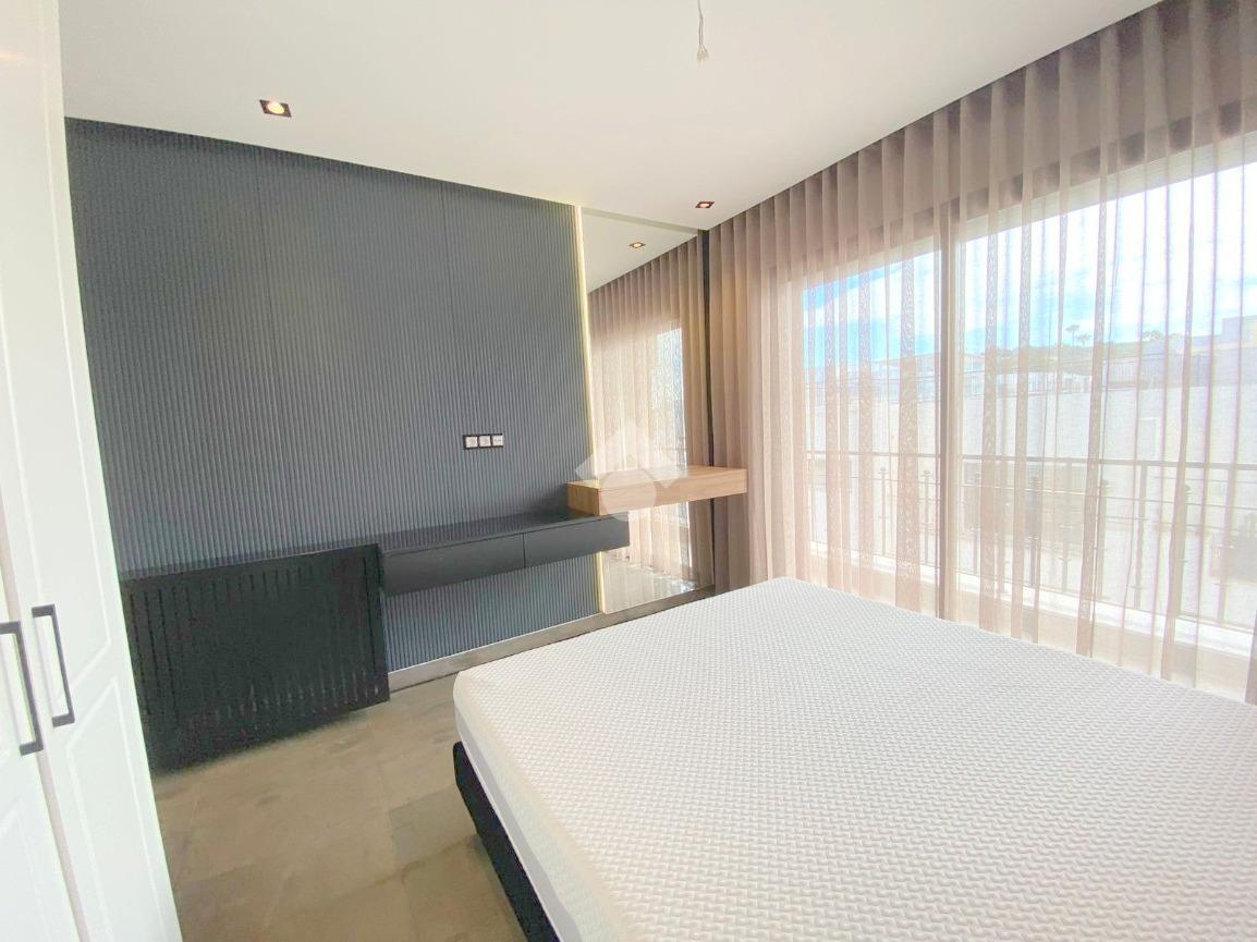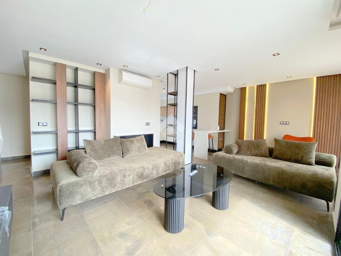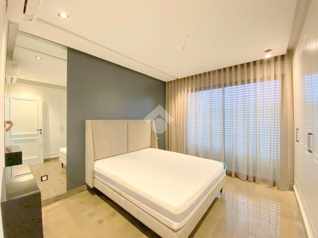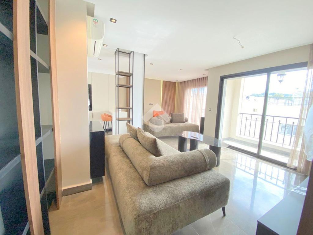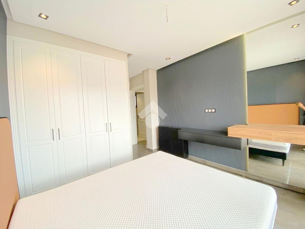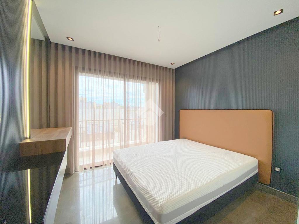 Il se compose d’un salon avec balcon, d’une cuisine ouverte entièrement équipée (plaque, hotte, four électrique, micro-ondes, machine à laver, lave-vaisselle) avec séchoir, d’un point d’eau pour les invités, de deux chambres à coucher chacune avec balcon et d’une salle de douche.
