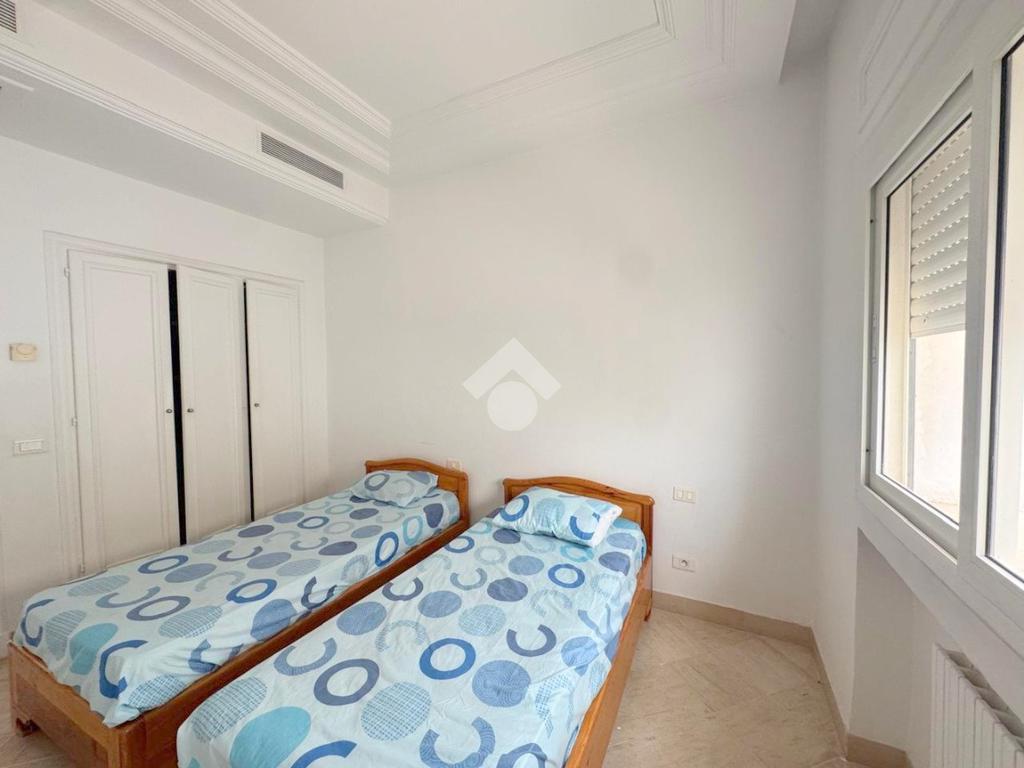 Cet appartement est situé au premier étage d’une résidence sécurisée, à la Marsa plage.