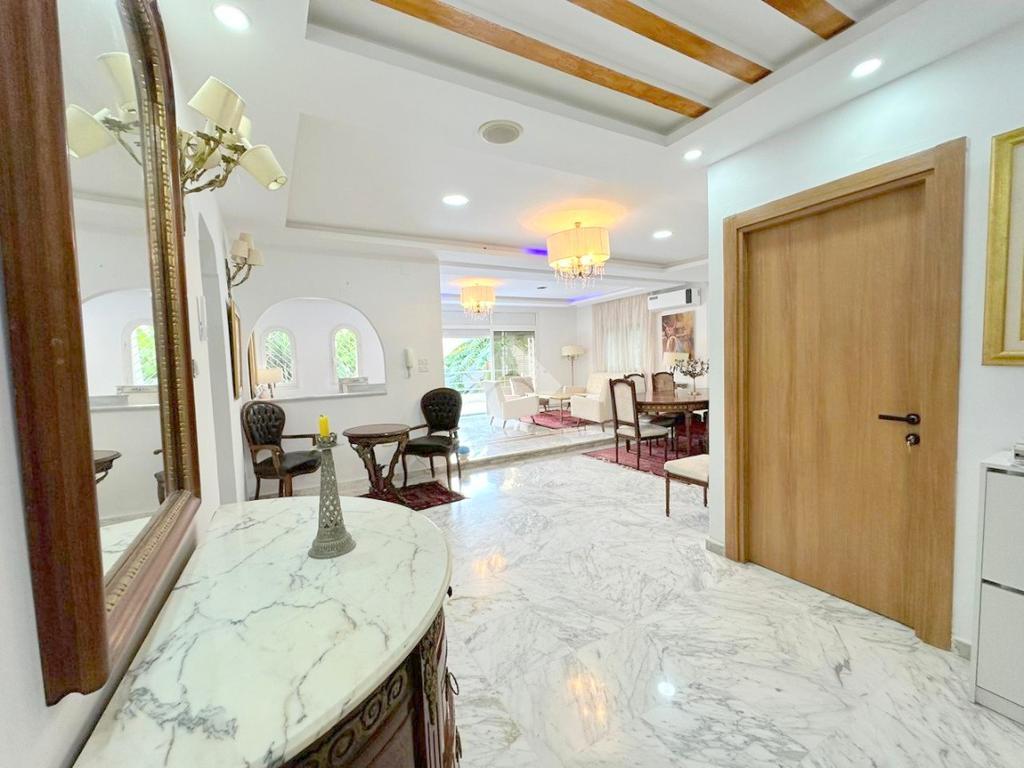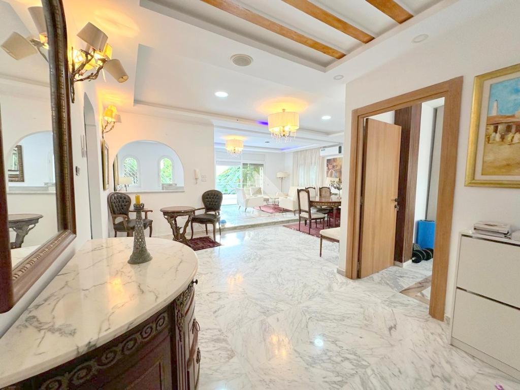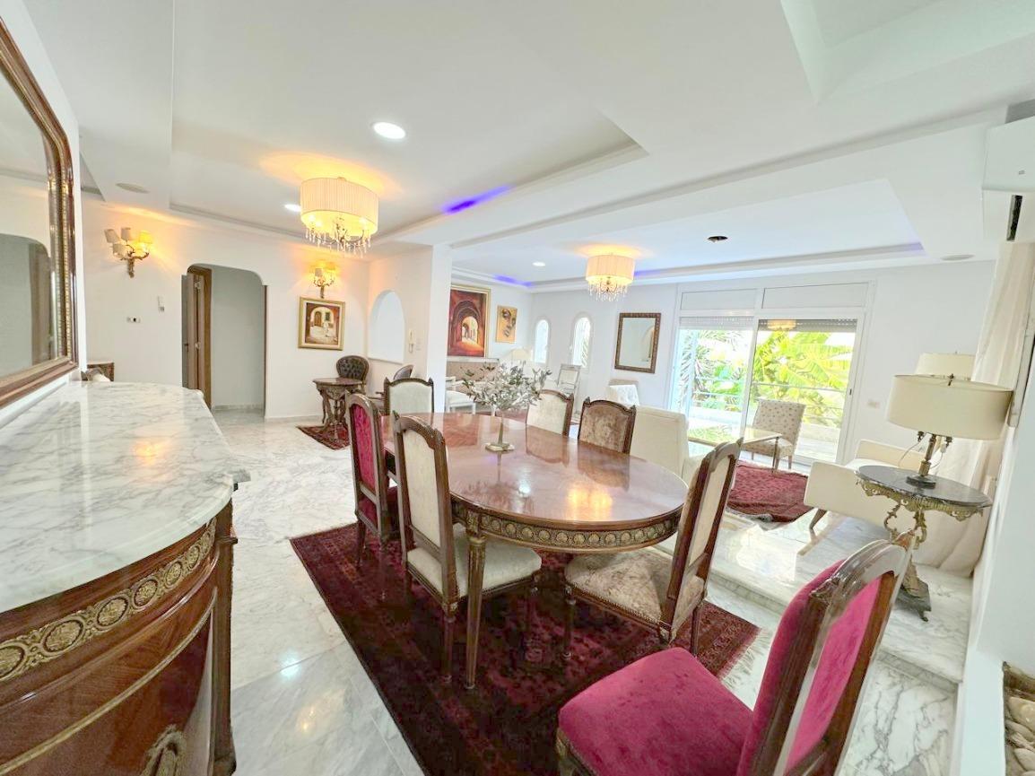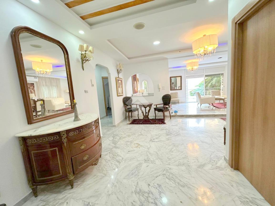 L’entrée principale donne accès à une belle pièce de réception, un salon et une salle à manger, bénéficiant d’une excellente luminosité naturelle grâce aux larges ouvertures sur l’extérieur.