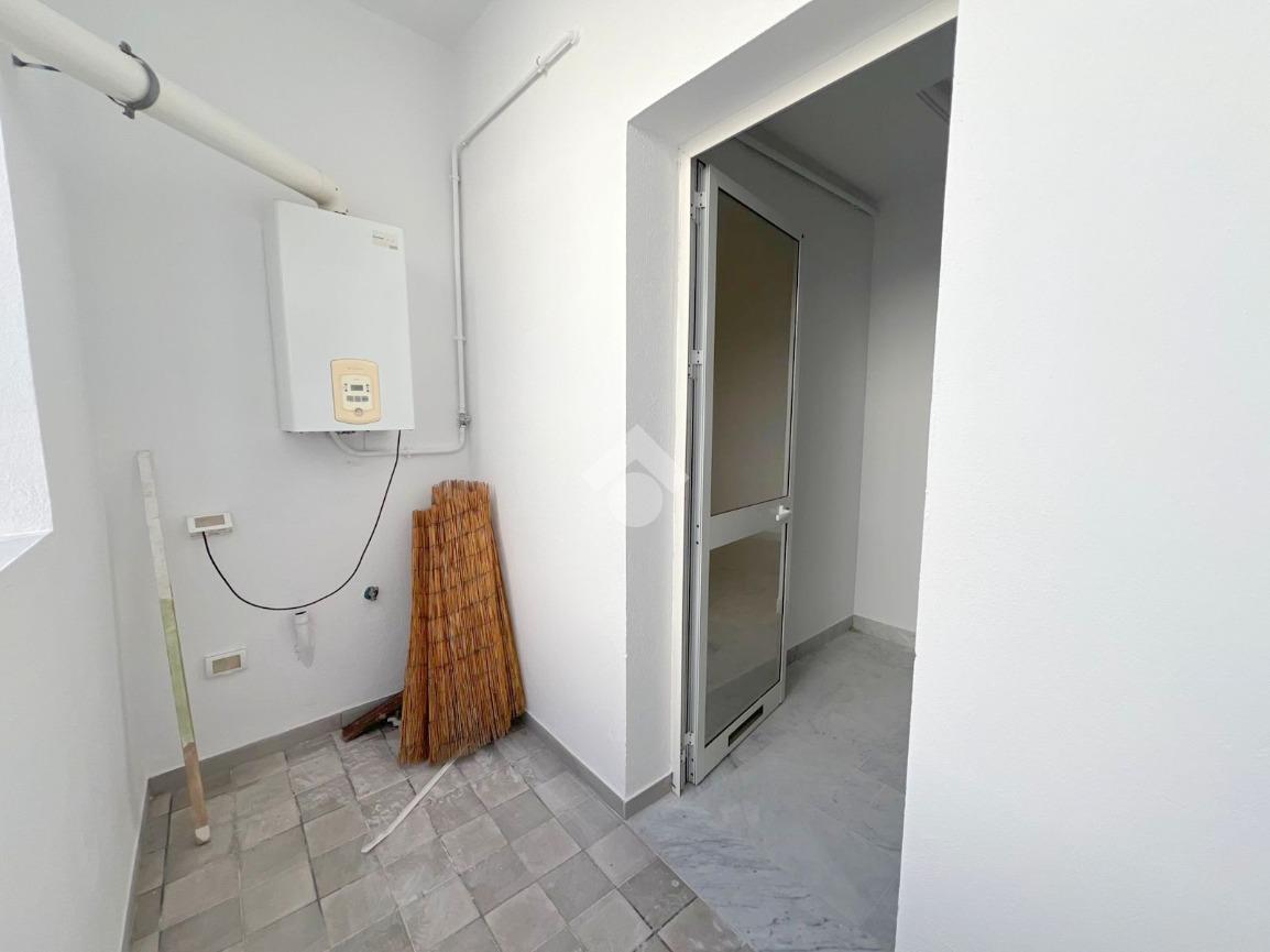 Le hall d’entrée s’ouvre sur un salon lumineux grâce à son accès à un balcon. La cuisine est équipée d’une plaque de cuisson et d’une hotte aspirante.