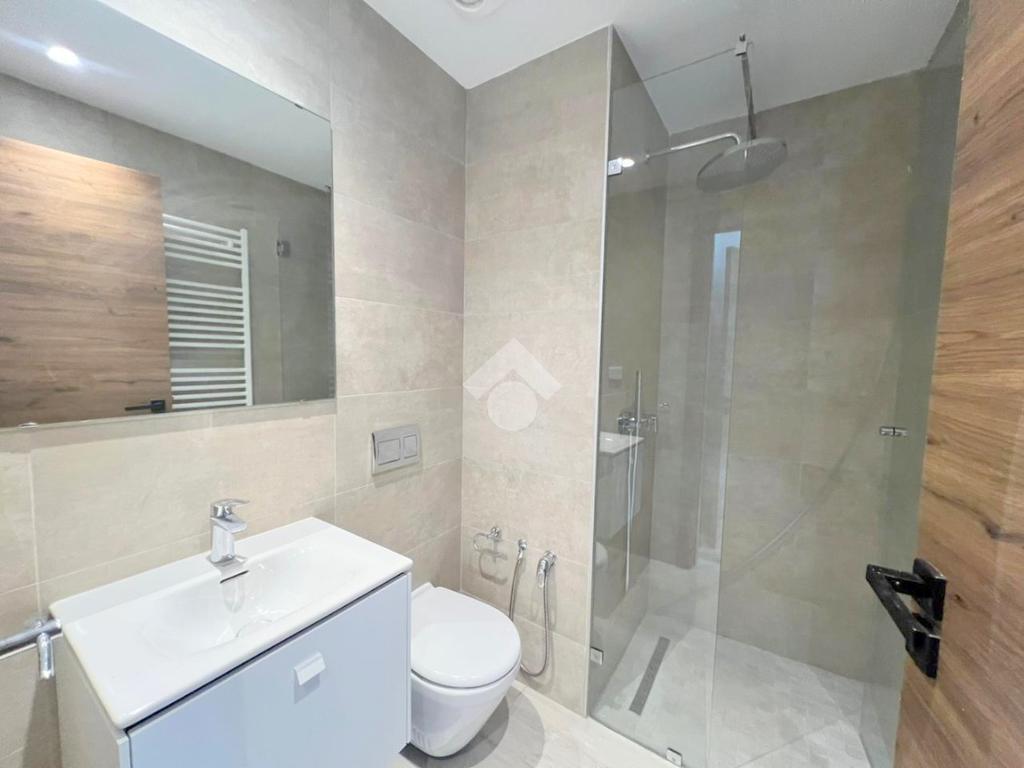 Une salle de bain équipée d’une cabine de douche à l’italienne complète cet espace.