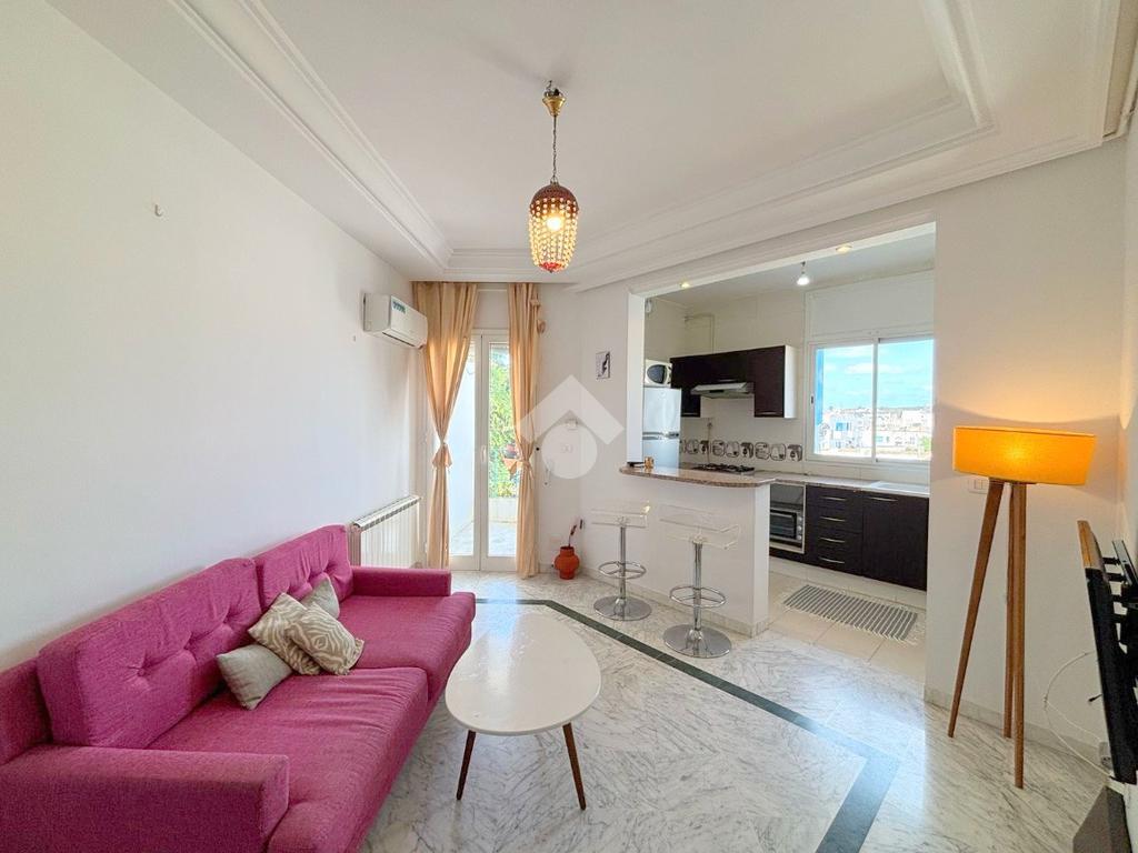 Cet appartement S1 meublé est situé au deuxième étage dans une résidence bien sécurisée à La Marsa.