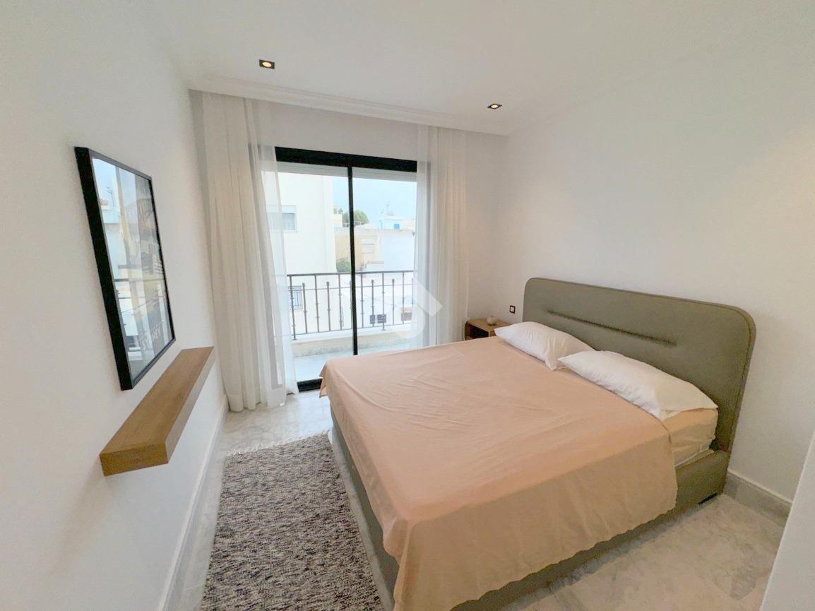 Cet appartement meublé est situé au deuxième étage d'une résidence avec ascenseur, dans un quartier calme de La Marsa plage.