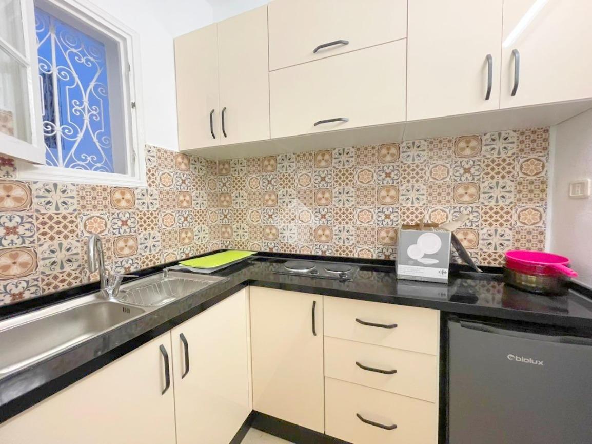 Cet appartement meublé est situé au rez-de-chaussée, dans un quartier calme de La Marsa, à l’écart des embouteillages, au cœur de La Marsa Ville.