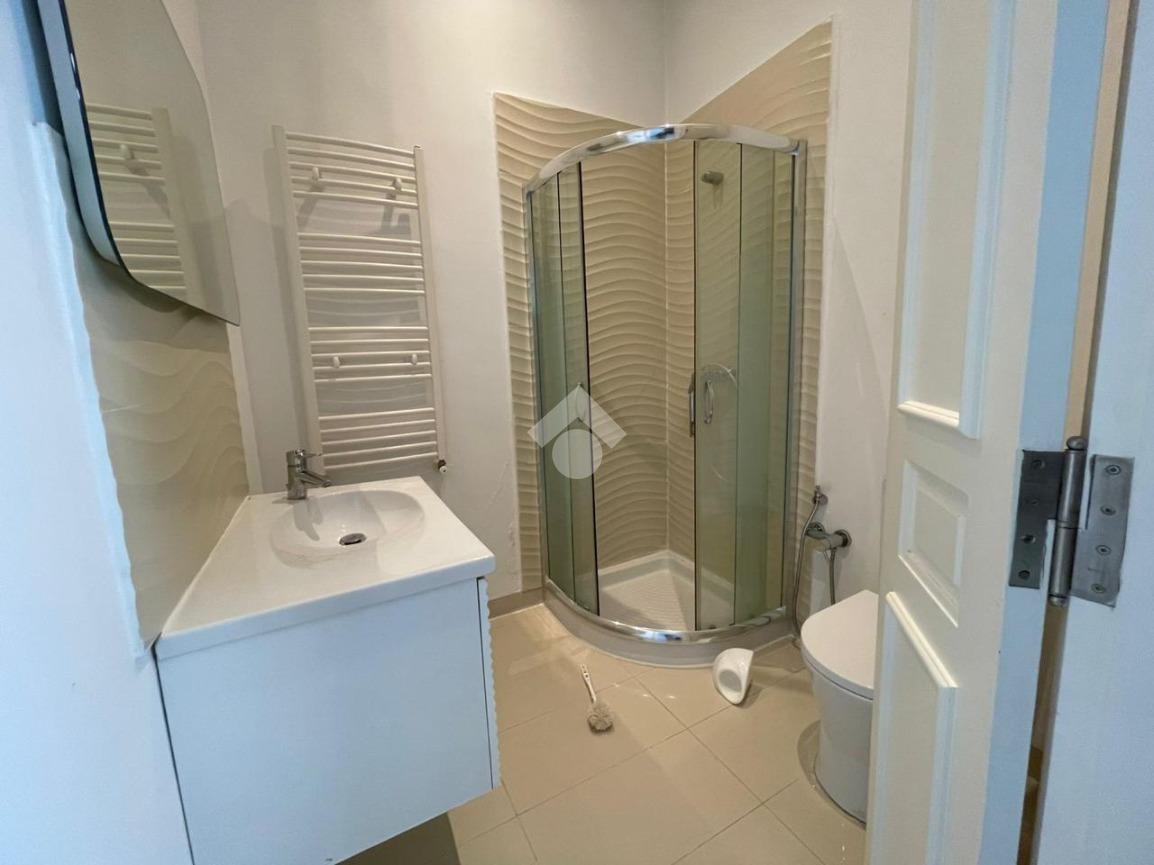 Le hall d’entrée dessert un salon et une salle à manger lumineux, ouvrant sur une terrasse. Il comprend également une salle d’eau pour les invités ainsi qu’une cuisine équipée (plaque, hotte aspirante et four).