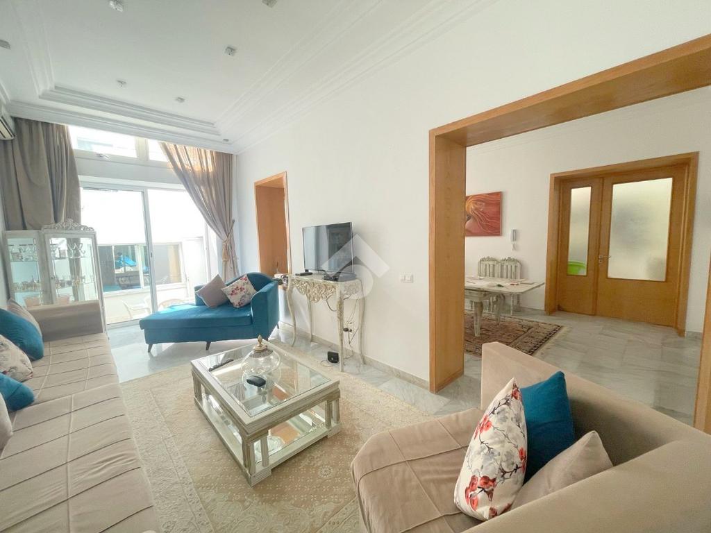 Ce duplex S+4 meublé est situé au rez-de-chaussée d’une résidence avec ascenseur, au cœur de La Marsa Plage.