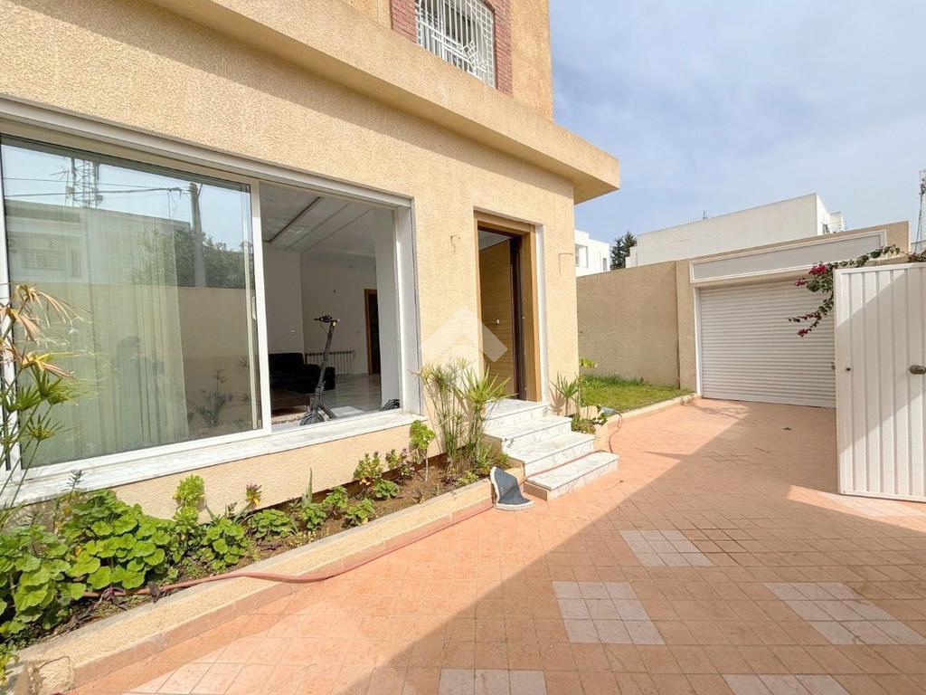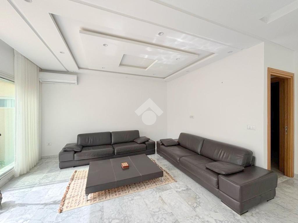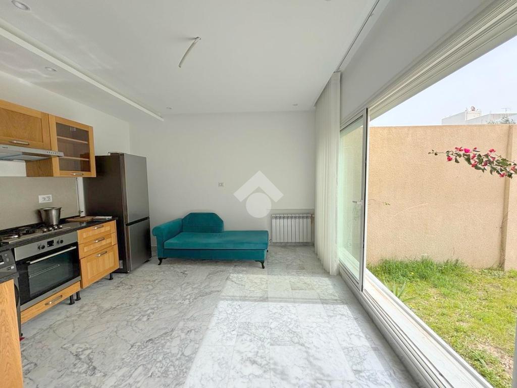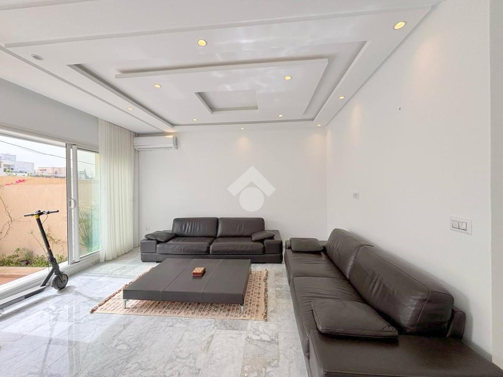 Le hall de réception mène à un salon et une salle à manger lumineux, s’ouvrant sur un jardin.